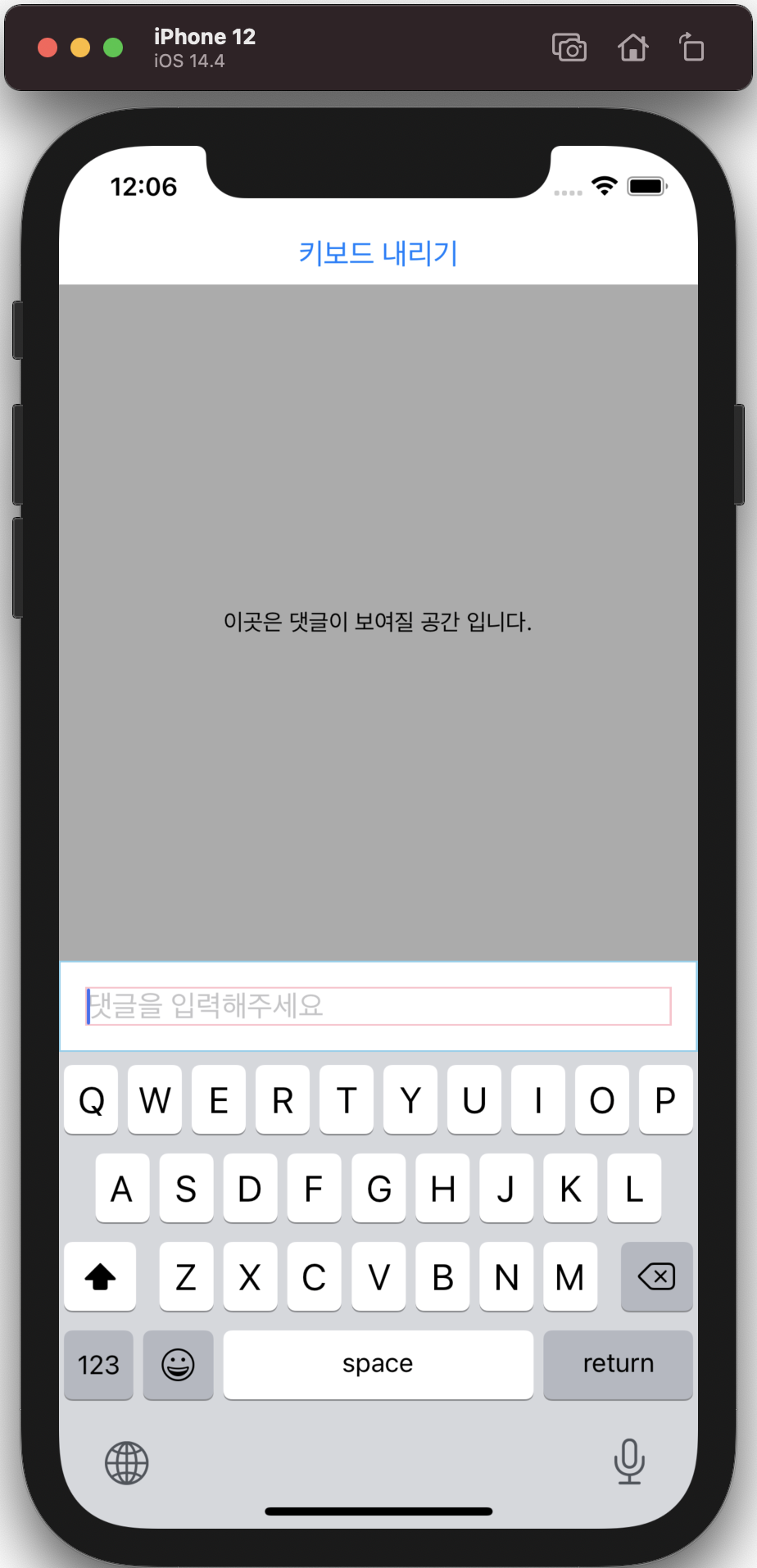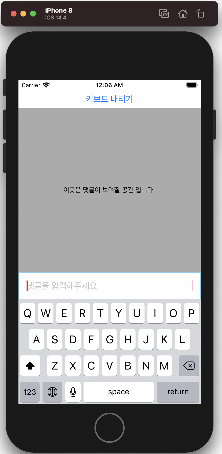 해당 컴포넌트를 적용한 것만으로 적용 전 가려졌던 텍스트 입력창이 키보드 위로 올라온 모습을 확인 가능합니다.