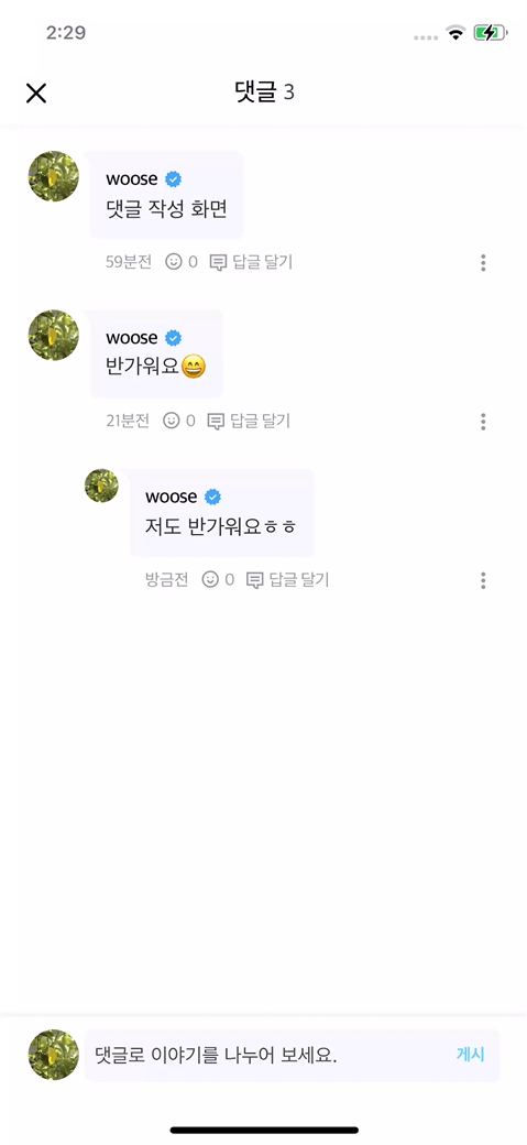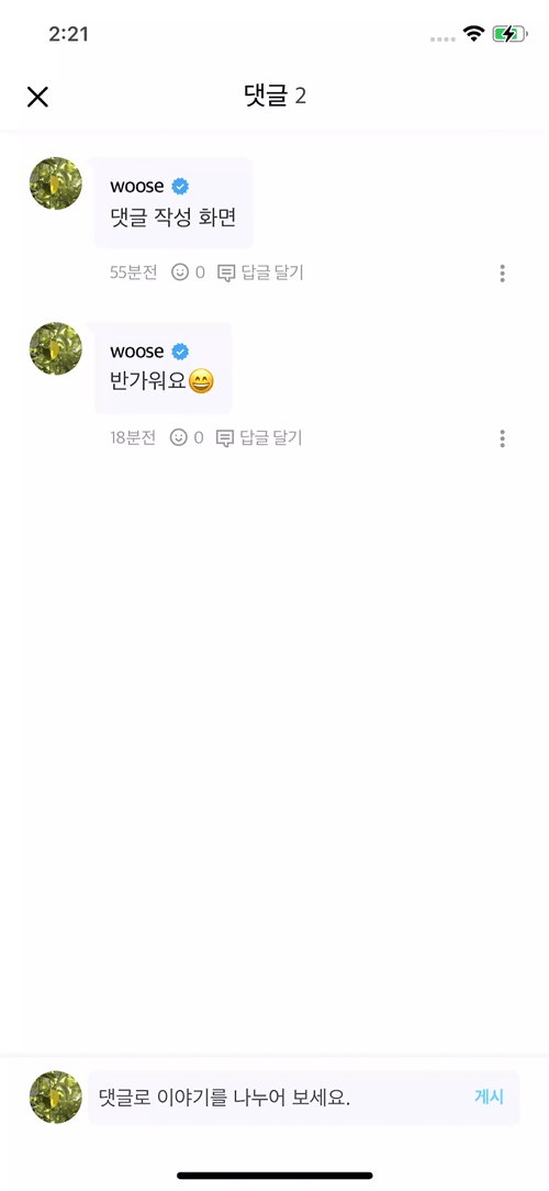 오늘은 이 중 댓글을 통해 소통할 수 있는 화면에 대해 글을 작성하려 합니다.