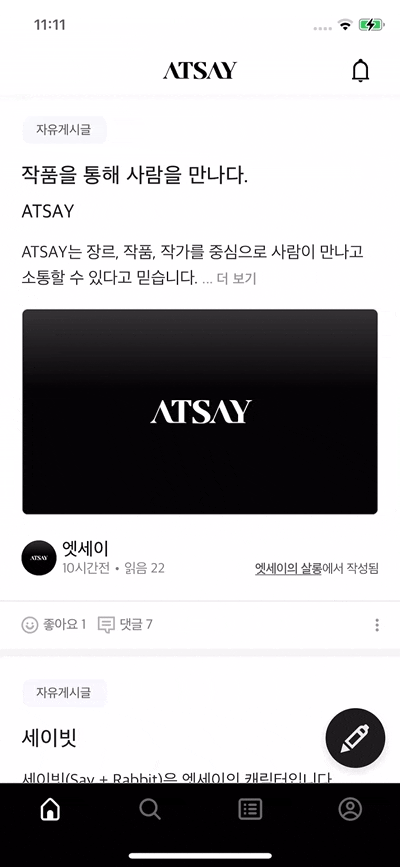 ATSAY에 로그인하게 되면 가장 처음 만나는 화면은 홈 화면입니다.