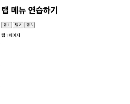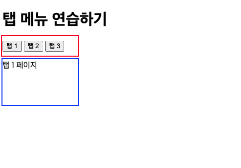 파란색 영역: 탭의 내용을 나타는 영역으로, 클릭된 버튼에 따라 '탭 1 페이지', '탭 2 페이지', '탭 3 페이지'로 변하게 됩니다.