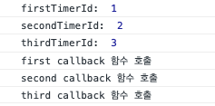 - setTimeout의 반환 값은 생성한 타이머에 대한 고유 id 값